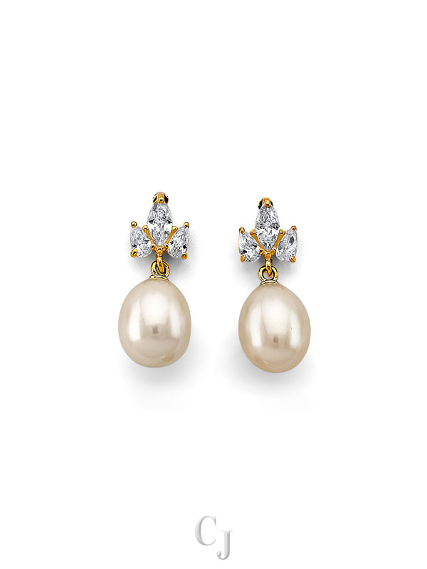 14KY CZ Pearl Earrings