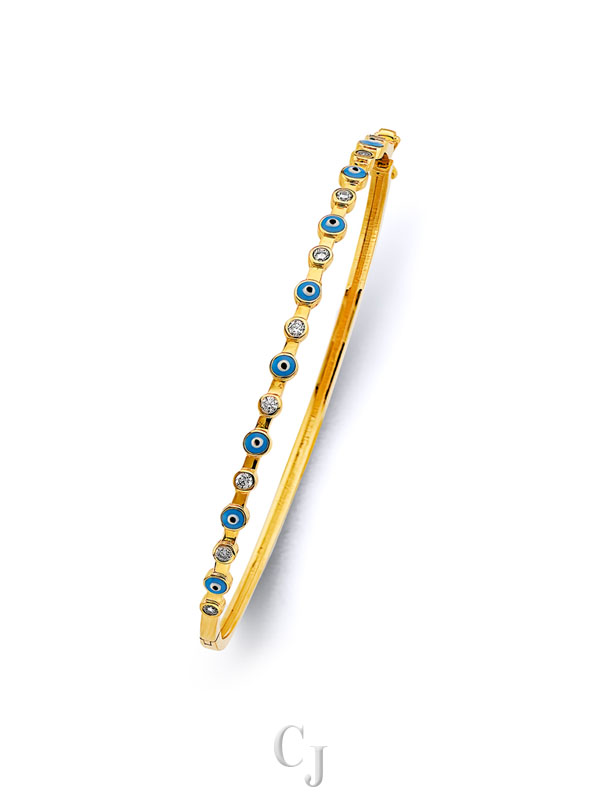 14KY Evil Eye Oval Bangle