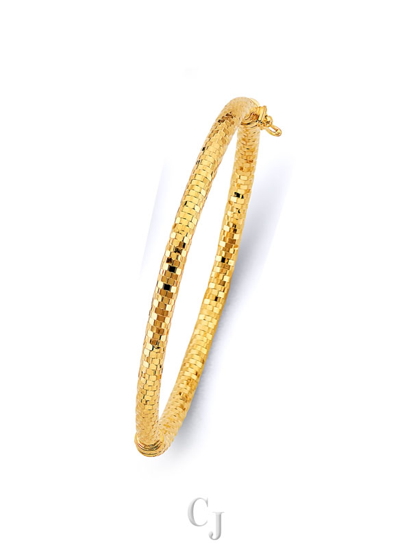 14KY Half Round Dome Hollow Oval Bangle
