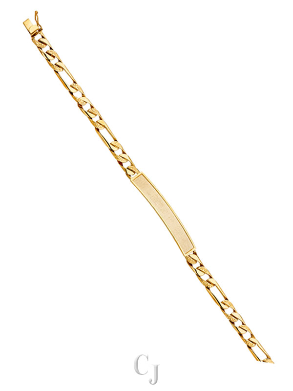 14KY Nugget Figaro Link Frame ID Bracelet
