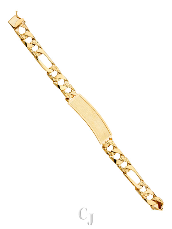14KY Nugget Figaro Link Frame ID Bracelet