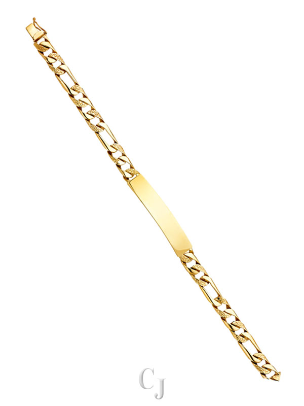 14KY Nugget Figaro Link ID Bracelet