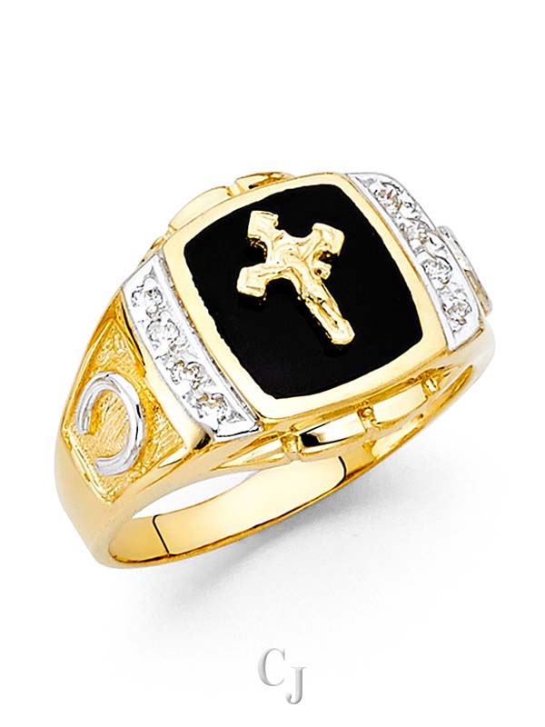 14KY Onyx Cross 2T Men’s Ring