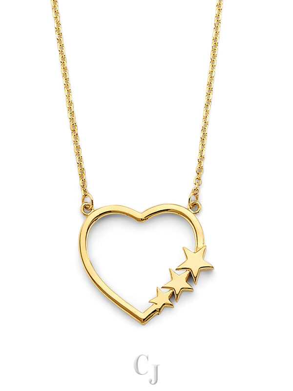14KY Open Heart with 3 Stars Necklace