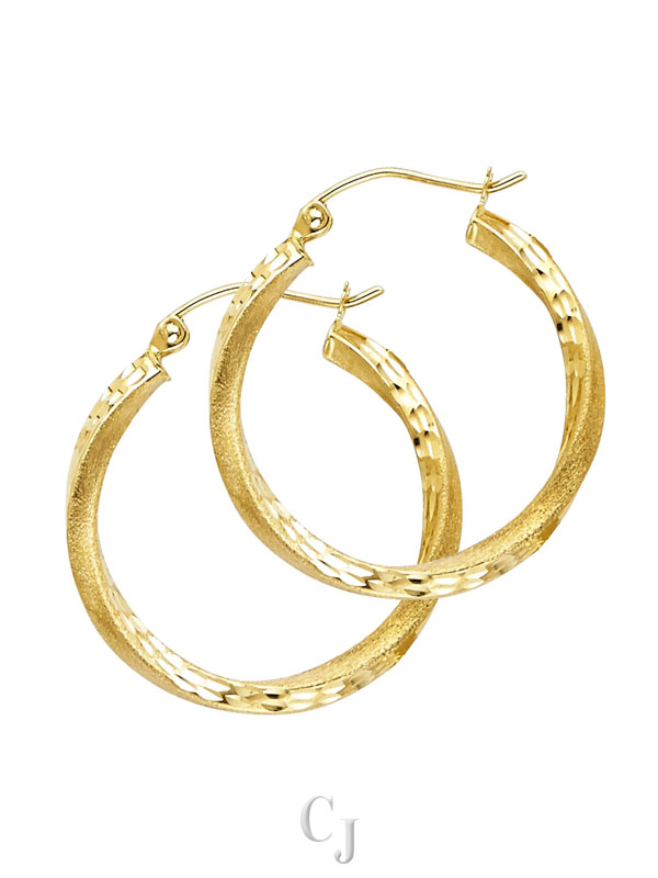 14KY SF DC 2.6mm Swirl Hoop Earrings (25mm)