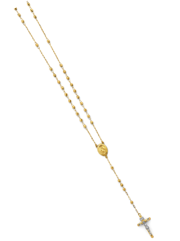 14KY Two-Tone Gold 3mm Disco Ball Rosary Necklace