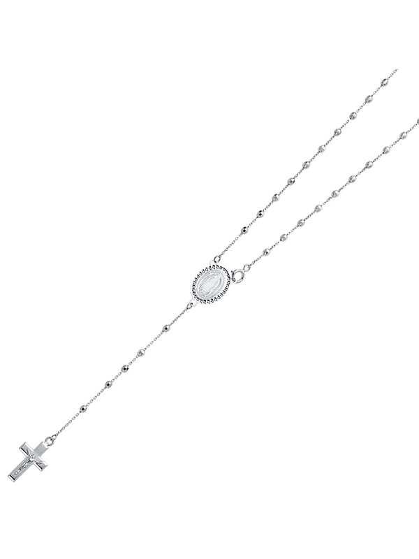 14KY White Gold 2.5mm Disco Ball Rosary Necklace