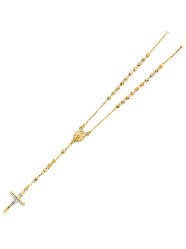 14KY Yellow Gold 4mm Moon Ball Rosary Necklace – 26″
