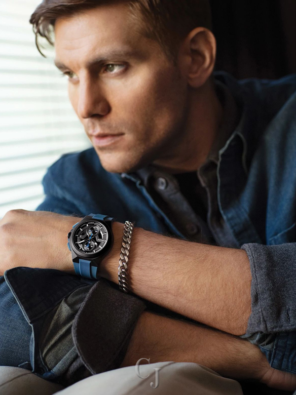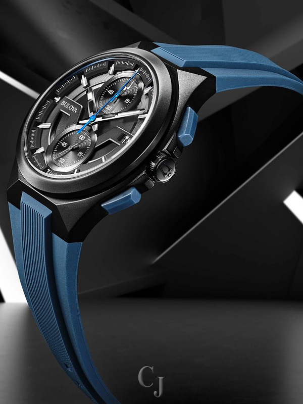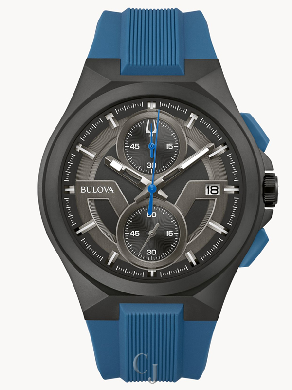 Make a bold statement with the sporty, new Maquina timepiece – guaranteed to stand out on any wrist. The modern design with a rugged edge features a black ion-plated stainless steel case and dark gray and black dial with blue accents that showcases the 5-hand chronograph movement and calendar on a matte blue silicone strap. It also features a sapphire crystal and water resistance to 100 meters. This distinctive men’s Maquina watch offers a new twist on a bold chronograph that is essential for your sport style.