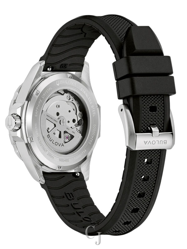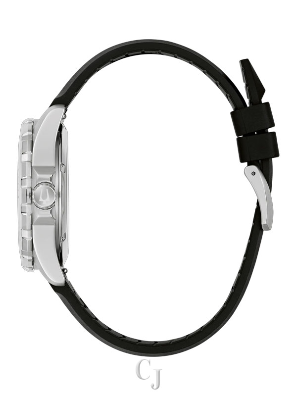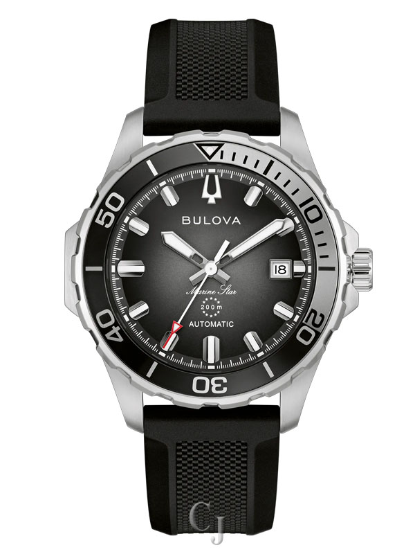 An uncompromising redesign of one of Bulova’s most celebrated models, the new men’s Marine Star Series B watch strikes the perfect balance between form and function. Perfectly sized at 41mm, the stainless steel case features 200m of water resistance, a screw-down crown, and a sapphire crystal, while its new unidirectional bezel has a bi-color aluminum insert with a timing scale. Complementing the black and silver bezel, the sunray dial shifts from silver to black, while bold, luminous hands and hour markers ensure optimal legibility above and below the waves. The watch is paired with an HNBR rubber strap and has a case back crystal to show off the automatic movement with 42 hours of power. Reimagined and better than ever, the new Bulova men’s Marine Star Series B watch is the perfect companion for every adventure, near and far.