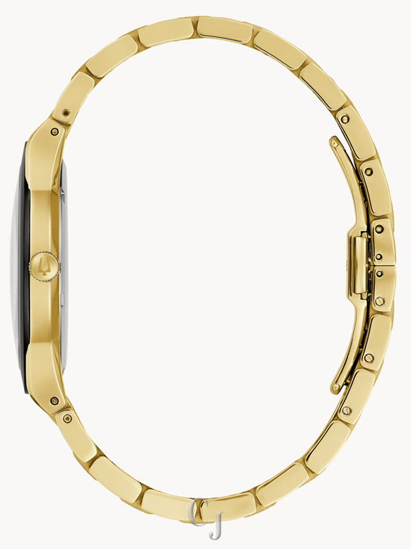This new men’s Bulova Oceanographer GMT brings a new look and new functionality to the legendary Bulova design. The rose gold-tone stainless-steel case features a curved silhouette, a box sapphire crystal, a two-tone “root beer” bidirectional rotating 24-hour bezel, and a screw-down crown providing 200m of water resistance. A vivid black dial is accented by tasteful pops of rose gold color, with applied luminescent hour markers, bold hands including a 24-hour hand and featuring luminescent paint, and a date display. An independently adjusted hour hand allows for easy setting of the local time. The Oceanographer GMT is powered by a self-winding GMT movement with 24-jewels and a power reserve of 42 hours, protected by a screw-down caseback. Paired with a matching three-link bracelet with a sport foldover clasp. Wherever you go, whatever you do, the men’s Bulova Oceanographer GMT will make sure you do it in style.