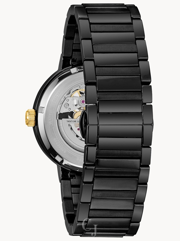 BULOVA MODERN FUTURO BLACK GOLD ACCENT STAINLESS STEEL WATCH 98A203