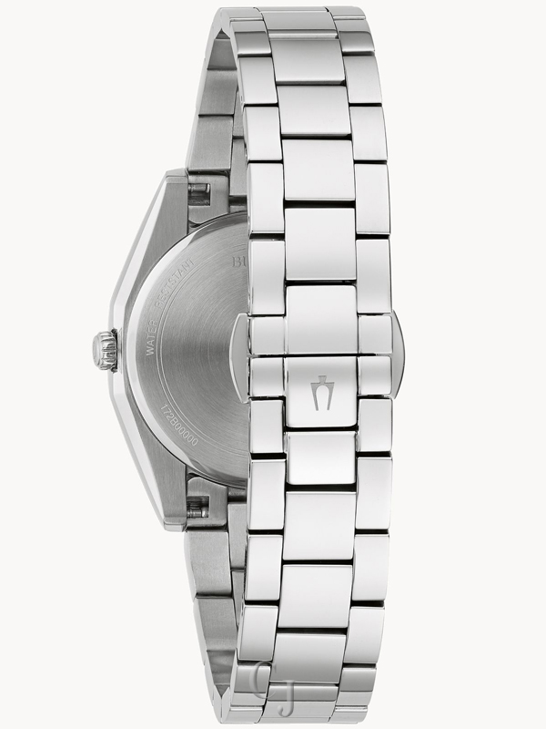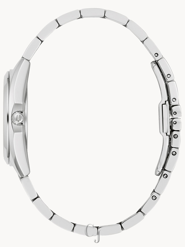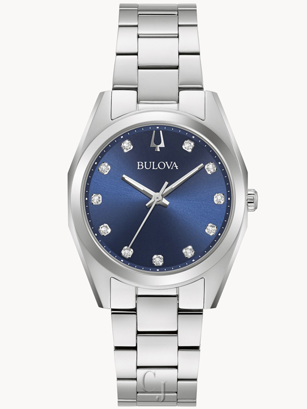 The Surveyor from Bulova is a classic women’s watch that will never go out of style. This silver-tone watch has a stainless steel case and bracelet with a blue three-hand dial hand set with 11 diamonds for both the look and feel of a luxury watch. With beautiful details and an elegant flair, this accessory brings a touch of timeless elegance to any occasion.