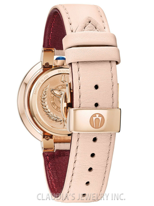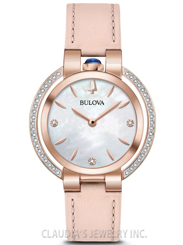 BULOVA WOMEN’S RUBAIYAT 45 DIAMONDS PINK LEATHER STRAP 98R267