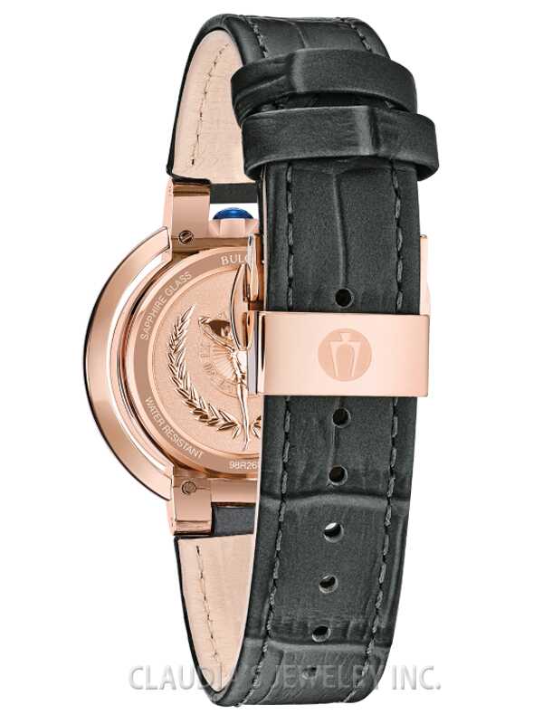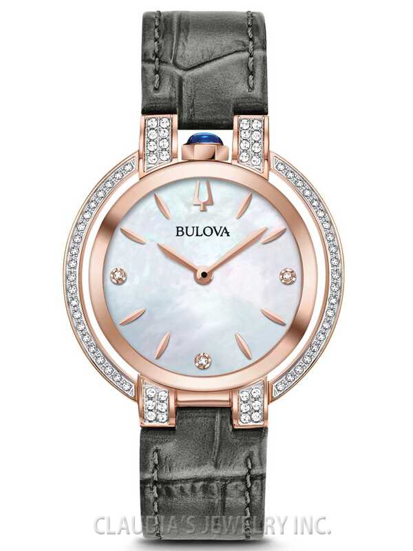 BULOVA WOMEN’S RUBAIYAT 73 DIAMONDS GRAY LEATHER STRAP 98R268