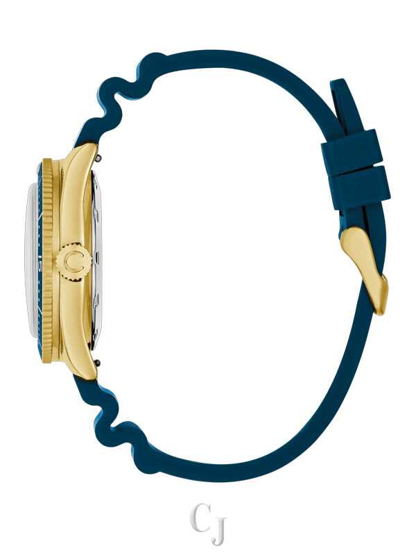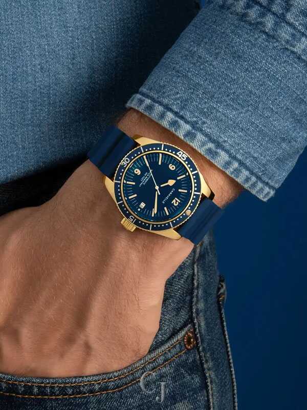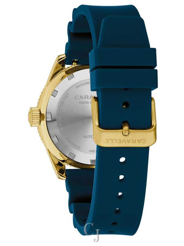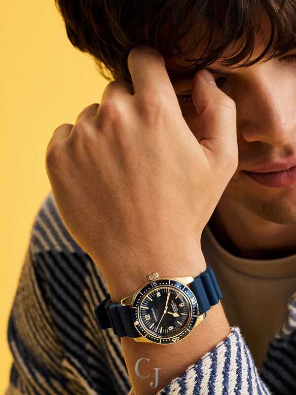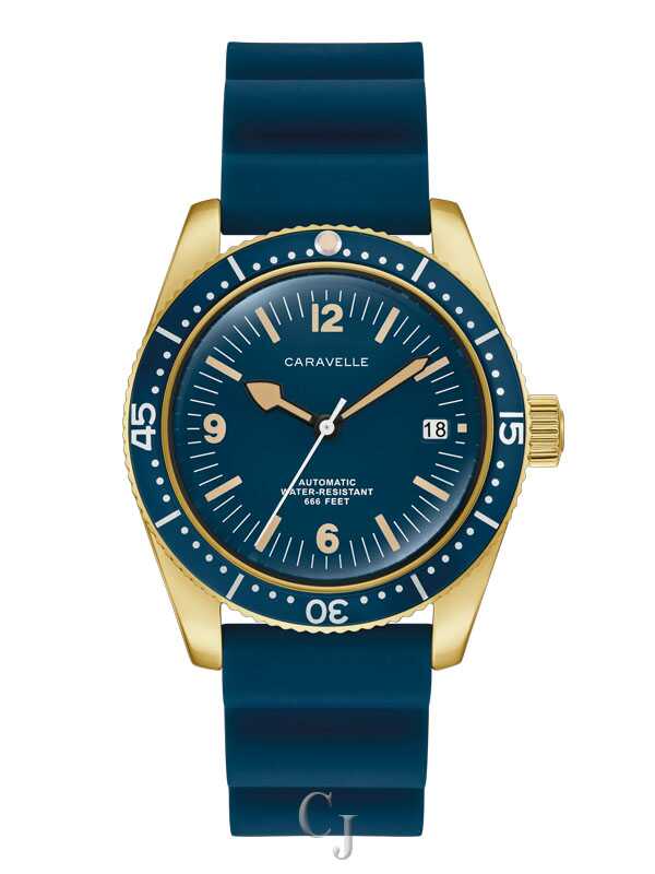 The return of an icon: The men’s Caravelle Sea Hunter is reborn for the modern age. Inspired by one of Caravelle’s most celebrated models, the new Caravelle Sea Hunter is sized for modern tastes at 39mm, with a gold-tone case crafted from 316L stainless steel and echoing the sporting form of the original. Ensuring ideal legibility and functionality, a deep blue dial with a date display and luminescent hands and markers is complemented by a matching rotating 60-minute timing bezel. The Caravelle Sea Hunter is powered by a 21-jewel automatic movement with a power reserve of 42 hours. Paired with rugged blue rubber strap and rated to 200m water resistance, this watch can go wherever you do so you can do whatever you want. Experience an icon remade with the men’s Caravelle Sea Hunter.