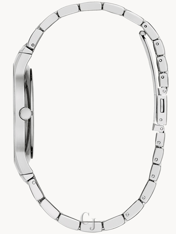Sleek and polished defines this gift set from the Modern collection. The timepiece includes a blue sunray dial with stainless steel markers finished with a silver-tone stainless steel case and bracelet. A silver-tone stainless steel jewelry bracelet completes the gift set with a H-link design and a jewelry buckle closure.