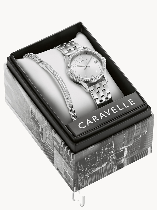 CARAVELLE BY BULOVA BOX SET SILVER DIAL WOMEN’S WATCH 43X104