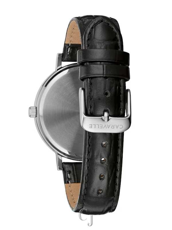 The Caravelle by Bulova watch, model number 43A152, is a stylish wristwatch with a stainless steel case in white, measuring 40mm. It showcases a simple and elegant design with an analog display and a cool blue dial. The smooth bezel adds to its overall look, and the durable mineral crystal protects it. The black leather strap, secured with a practical buckle, gives it a classy touch. Powered by a replaceable battery, this watch is both fashionable and functional, featuring a second hand and water resistance. It’s perfect for those who appreciate a straightforward yet chic timepiece.