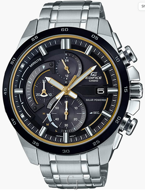 Features: Stainless Steel Case Stainless Steel Bracelet Solar Movement Caliber: 5530 Mineral Crystal Black Dial Analog Display Chronograph Function 12/24 Hour Display Luminous Hands And Markers LED Light Battery Level Indicator Regular Timekeeping Accuracy: ±20 Seconds Per Month Date Display Solid Case Back Deployment Clasp 100M Water Resistance Approximate Size Of Case: 52.9 x 49 x 13.2mm