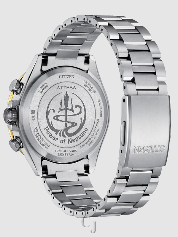 Powerful design and advanced technology drive the new luxury Attesa. Since its 1987 launch, Attesa has incorporated titanium-processing know-how and features innovative, world-first technologies that will continue to shape the future. In this limited edition, dubbed the Power of Neptune, a 44mm Super Titanium™ case anchors the design of the cutting-edge timepiece, with sharp facets and fine finishing elevating the distinct chronograph’s style. A blue and gold tone world time bezel speaks to the watch’s ready-for-travel attitude, with its colors inspired by the icy surface of Neptune, a frozen planet at the very edge of our solar system. A dual-spherical sapphire crystal adds high clarity to the dial details, where more blue and gold-tone accents upon a bright surface together make a striking statement on the wrist.