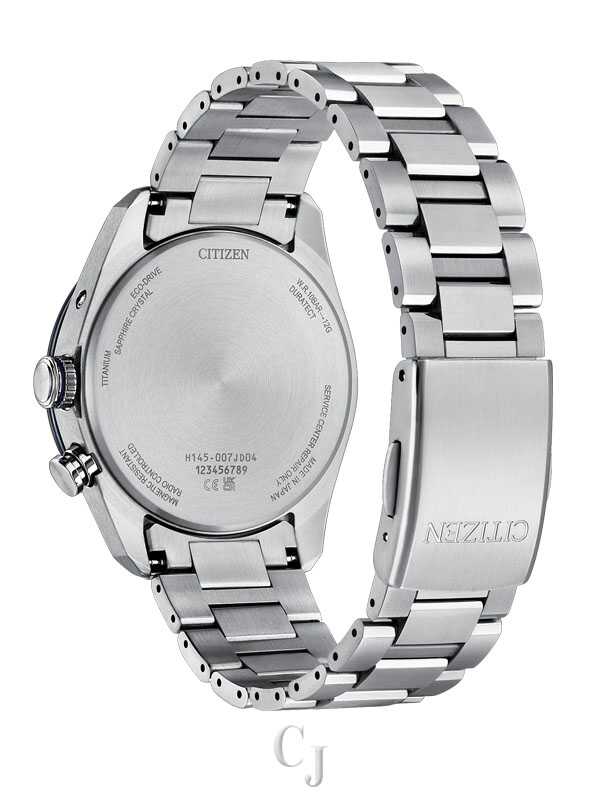 This example, which comes as part of the technology-driven Attesa collection, marks a unique take on the elevated luxury sports style. A 40.6mm scratch- and rust-resistant Super Titanium™ case in silver-tone with a matching triple-link bracelet and black DLC-coated world time bezel solidifies the lightweight, durable construction of the timepiece. On the special UNITE with BLUE iridescent dial, flowing hues of structural blues and greens meld into each other for a captivating aesthetic of sustainable style, while upon it, a time-and-date display is at work, with silver-tone accents adding dimension. Advanced features of the timepiece include world time in 26 time zones and a perpetual calendar. Featuring our sustainably light-powered Eco-Drive Atomic Timekeeping functionality, the timepiece self-adjusts to time or calendar when traveling overseas by receiving local time signals in four different regions. Water resistant up to 100 meters. Caliber H145.