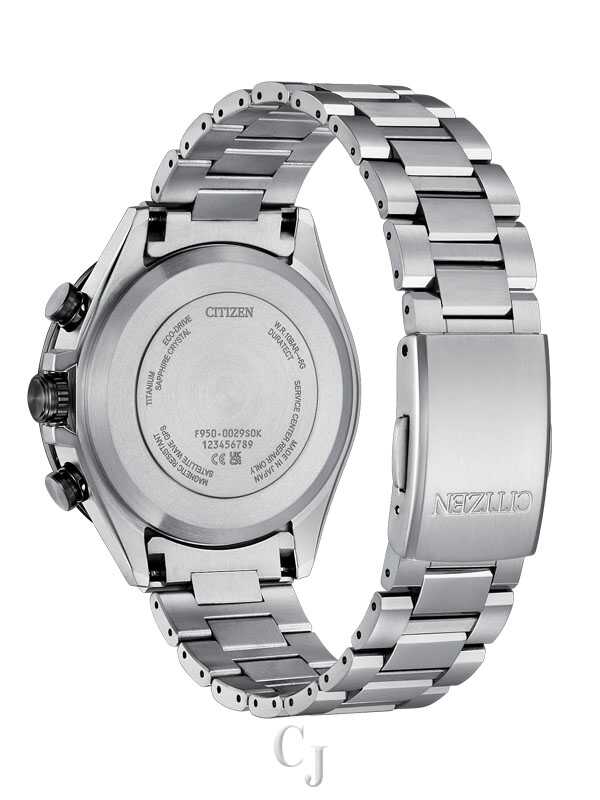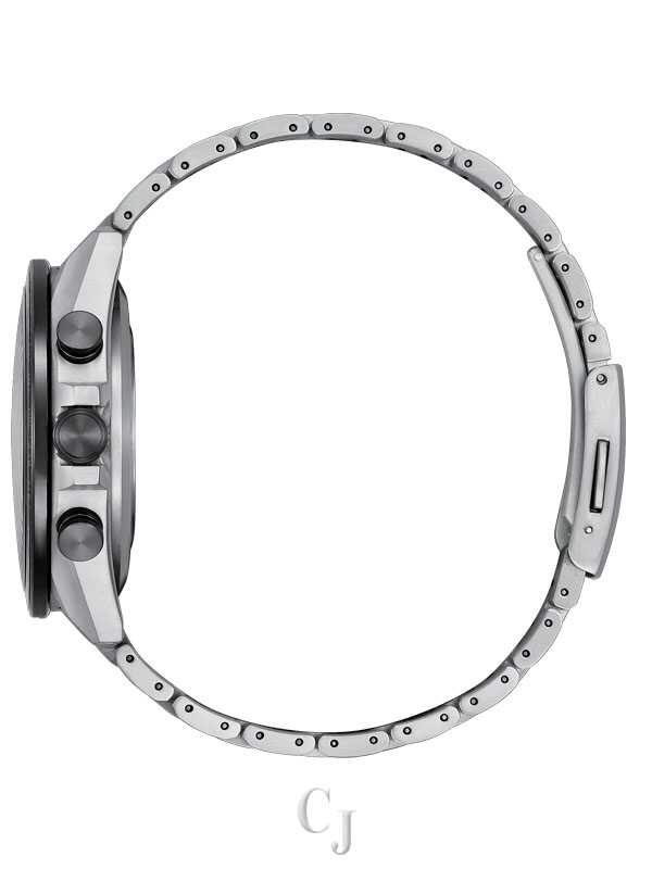 This model features the most advanced movement for Eco-Drive Satellite Wave GPS watches and delivers the world’s fastest time-only signal reception in as little as 3 seconds. Other advanced features include world time in 27 cities (40 time zones), a 1/20-second chronograph, dual time zones (UTC) universal coordinated time display, a perpetual calendar, as well as daylight savings time, and power reserve and light level indicators. This distinctive chronograph utilizes Citizen’s Eco-Drive technology that’s sustainably powered by any light and never needs a battery. Water resistant up to 100 meters. Caliber F950.