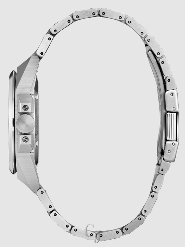 Balancing the worlds of robust design and refined styling, the 831 features a 40mm silver-tone, faceted stainless steel case alongside the best of Citizen’s finishing techniques. With its matching stainless steel bracelet, the watch is ready for wear in any instance. Underneath a sapphire crystal, a green textured dial is as captivating as it is practical, playing in the light while being highly legible an account of its applied indices and the sharp design of hands. A 3 o’clock date window adds even more utility to the design, while the automatic mechanism which powers it secures the timepiece against strong magnetic fields. Water resistant up to 100 meters. Caliber 9051.