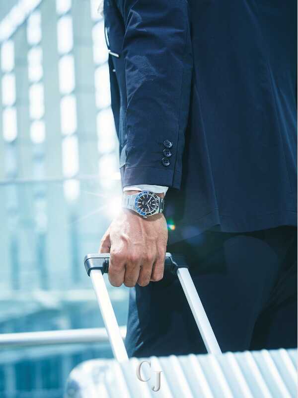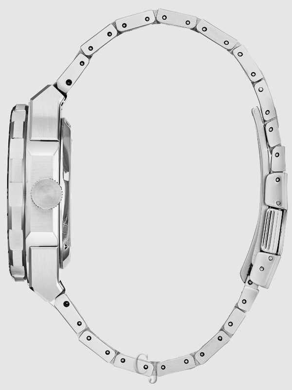 Functional and practical, modern and sporty – the new Citizen Series 8 GMT is the perfect companion from daily wear to spirited travel and everything in-between. The reimagined Citizen Series 8 collection of mechanical watches features elevated designs and high-performance automatic movements with enhanced magnetic resistance to fit every occasion, and this new traveler GMT watch is an impressive addition. Featuring an hour hand which can be independently set, the four-piece case construction defines the design of the brushed and polished silver-tone stainless steel 41mm case that frames the look, with an integrated three-link stainless steel bracelet securing the watch to the wrist and adding a modern sportiness in its wear. A black and blue bi-directional bezel centers the textured black dial with its two-tone 24-hour GMT scale, clicking precisely on each rotation, where a framed date display at the 3 o’clock position provides daily utility, while an orange-tipped hand assists in keeping track of multiple time zones. Water resistant up to 100 metres. Calibre 9054.