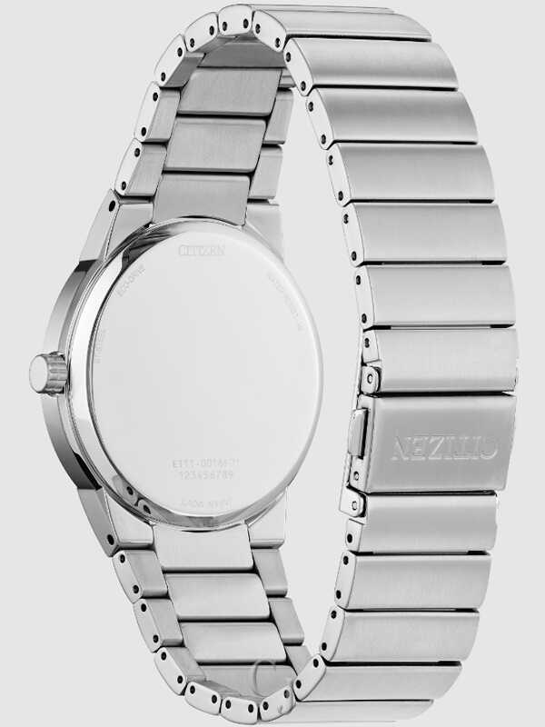 Axiom’s refined yet sleek design offers a day-to-night fashion option for the avid trendsetter. This model features a silver-tone stainless steel bracelet with a three-hand blue dial and date display. Sustainably powered by light by Eco-Drive and never requires a battery.