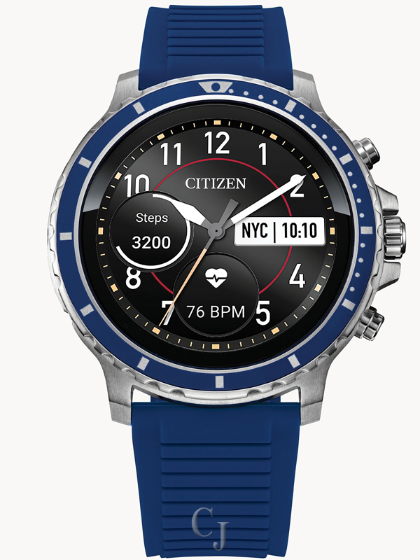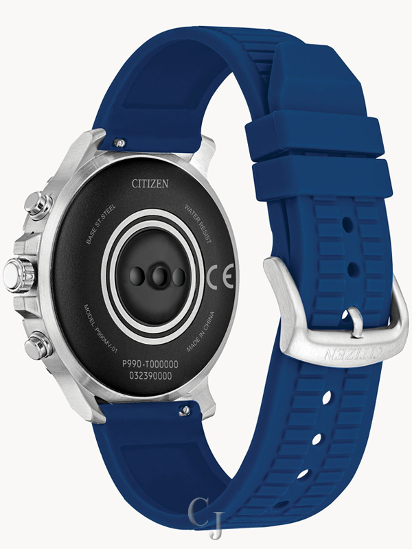 Citizen CZ Smart touchscreen smartwatch is designed for every moment. Inspired by the rich design of Citizen’s iconic sport technical timepieces, CZ Smart marries modern technologies with the style and quality you expect from Citizen. The sport edition features a color touchscreen dial and black anodized aluminum top ring, framed and finished with a silver-tone stainless steel case and comfortable blue silicone strap. CZ Smart also features a 46mm three-piece case construction and a rugged blue bezel design. Powered with Wear OS by Google™, CZ Smart is compatible with both iPhone® and Android™ phones to fit your lifestyle. Plus, the versatile menu of dials, designed exclusively for CZ Smart, gives you all the information you need at your fingertips. Please note: complimentary bracelet sizing is unavailable for CZ Smart due to the sealed packaging.