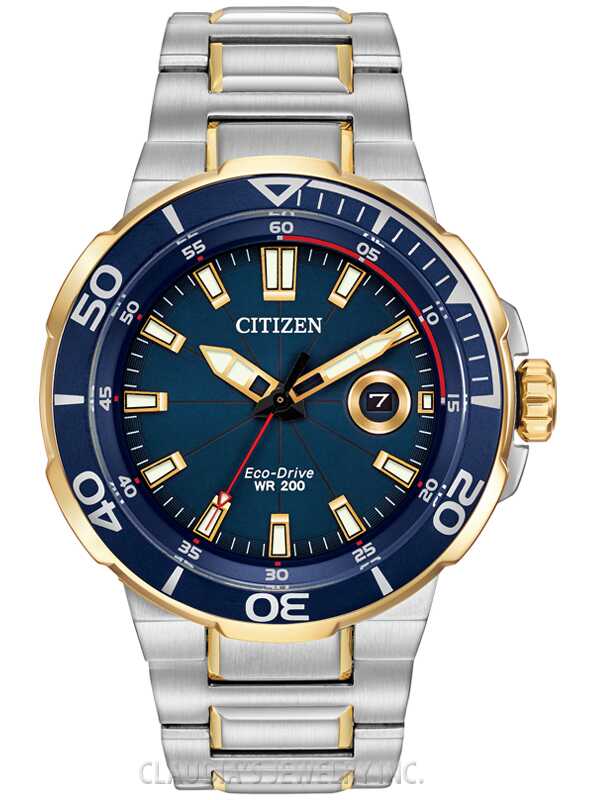 CITIZEN® Endeavor brings the nostalgia of racing on open waters to this handsome collection. Nautically-inspired details add interest to the embossed dial with color blocking on the inner bezel. The stainless steel case and bracelet is water resistant to 200 meters. Featured with dark blue dial, one-way rotating elapsed-time bezel, WR200 and date. Featuring our Eco-Drive technology – powered by light, any light. Never needs a battery. Caliber number J810.