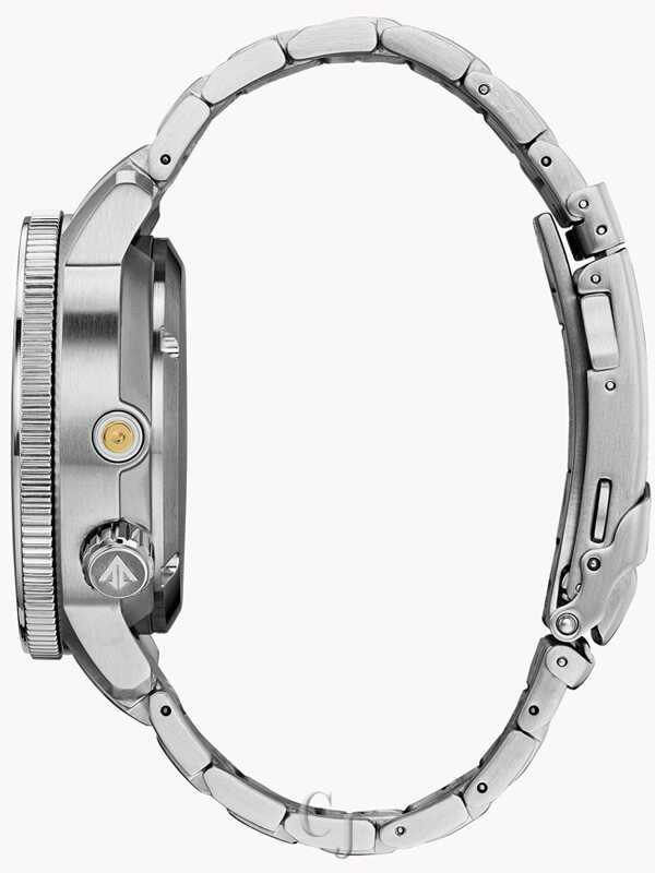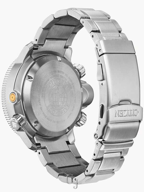 Ready, Set, Dive. An iconic name with a reinvented construction, the Citizen Promaster Aqualand ISO compliant watch with maximum depth memory, rapid ascent alarm, auto start dive mode and power reserve indicator with diver 200M, you won’t want anything else when headed to the ocean. Stainless steel case and bracelet compliment the black dial with bright orange bezel. Featuring our Eco-Drive technology – powered by light, any light. Never needs a battery. Caliber number J250.
