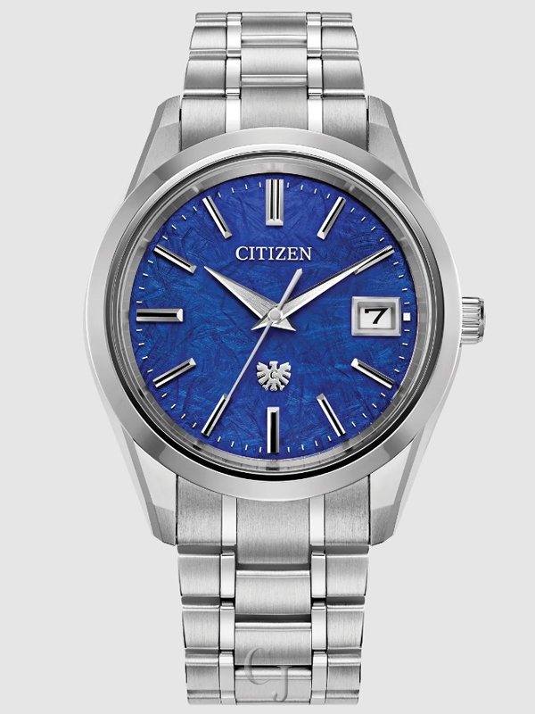 Superior precision meets the highest standards of quality in The CITIZEN. Representing the never-ending pursuit of the essence of the watch, this exceptional model serves as the ideal all-purpose timepiece, perfectly balancing mechanical refinement with aesthetic intrigue. On the wrist, the watch measures comfortably at 38.3mm, with its silver-tone Super Titaniumâ„¢ case faceted with sharp surfaces of brushed and polished finishing and complete with a matching five-link bracelet. A sapphire crystal protects its vibrant blue dial that features an eagle feather design, and towards the bottom of the display is the eagle mark, symbolizing the twin ideals of The CITIZEN – foresight and dedication to the pursuit of ideals, as well as the enduring connection between watch and wearer.