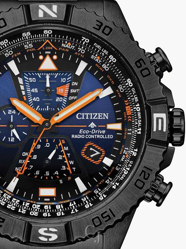 The newly re-launched Promaster Navihawk Limited Edition set is – with only 1,500 made – a must-have for collectors and enthusiasts alike. The black ion-plated dial showcases a blue to orange gradience that represents the night sky. In addition to Eco-Drive technology — it is sustainably powered by light — the watch has a wide range of features, including a chronograph, atomic timekeeping,
