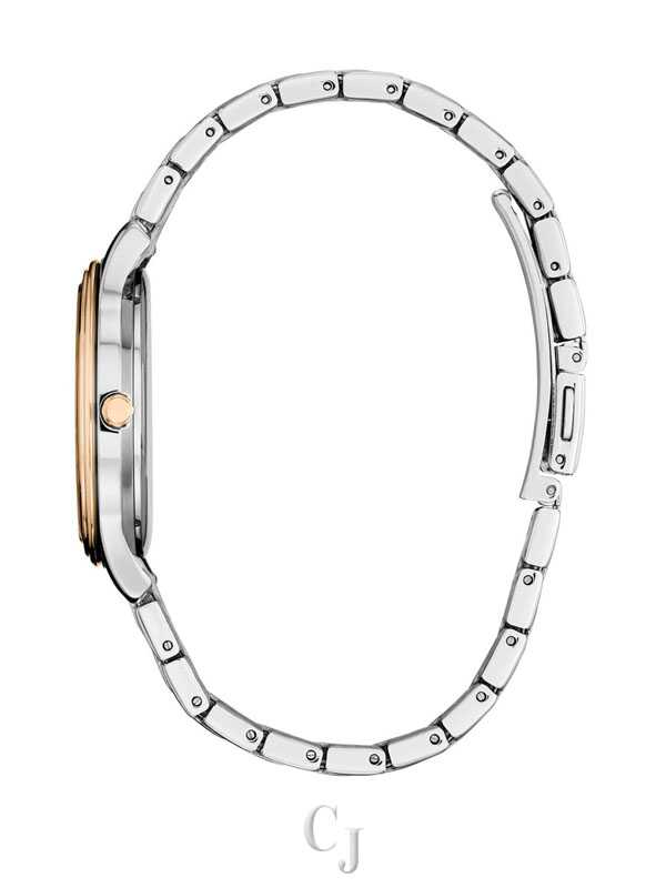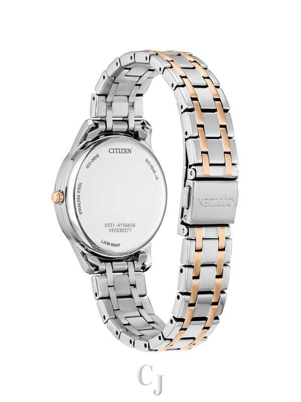 The Citizen Pink Dial Women’s Watch EM1216-55X brings together elegance, modern design, and everyday reliability. Its 36mm stainless steel case features a sleek silver-tone finish paired with a rose gold-tone bezel for a refined, two-tone look. The soft pink marble-textured dial adds a unique feminine touch, complemented by rose gold-tone hands that enhance its sophisticated appeal. A matching two-tone stainless steel bracelet provides comfort and style for daily wear. With 5 Bar (50m) water resistance and Citizen’s dependable craftsmanship, this timepiece is perfect for women who appreciate subtle luxury and graceful design in a watch they can wear every day.