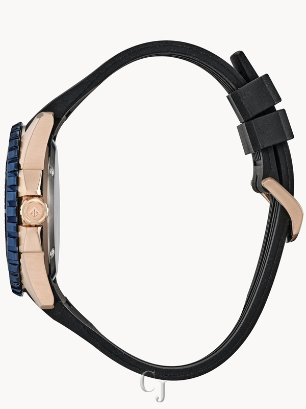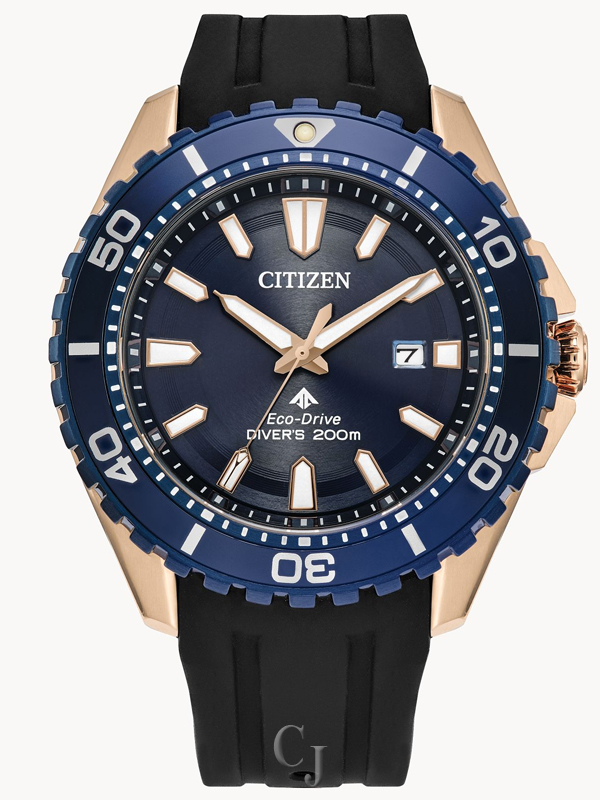 Explore the deepest depths with the latest Promaster Dive watch in a stylish new color combination. This must-have diving watch features a two-tone stainless steel case with a unidirectional bezel and dark blue 3-hand dial with a date and luminous hands and markers. The durable, black polyurethane strap with buckle closure completes the look for a comfortable fit. Featuring our sustainable Eco-Drive technology powered by any light that never needs a battery, you’ll wear this high-performance timepiece in high style from adventures on land to the deep blue sea. ISO compliant and water resistant to 200 meters. Caliber E168.