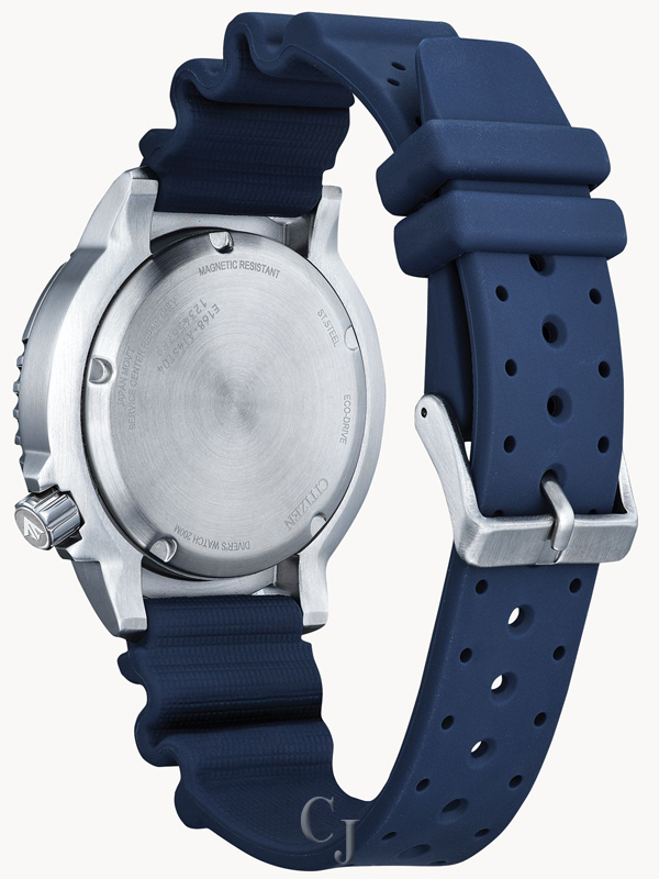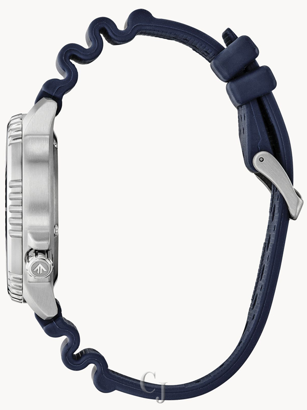 Explore the deepest depths with the latest Promaster Dive in a stylish new color combination. This must-have diving watch vibrantly features a silver-tone stainless steel case, an orange 3-hand dial with a date function, and luminous hands and markers. The durable, blue polyurethane strap with buckle closure completes the look for a comfortable fit. Featuring our sustainable Eco-Drive technology powered by any light that never needs a battery, you’ll wear this high-performance timepiece in high style from adventures on land to the deep blue sea. ISO compliant and water resistant to 200 meters. Caliber E168.