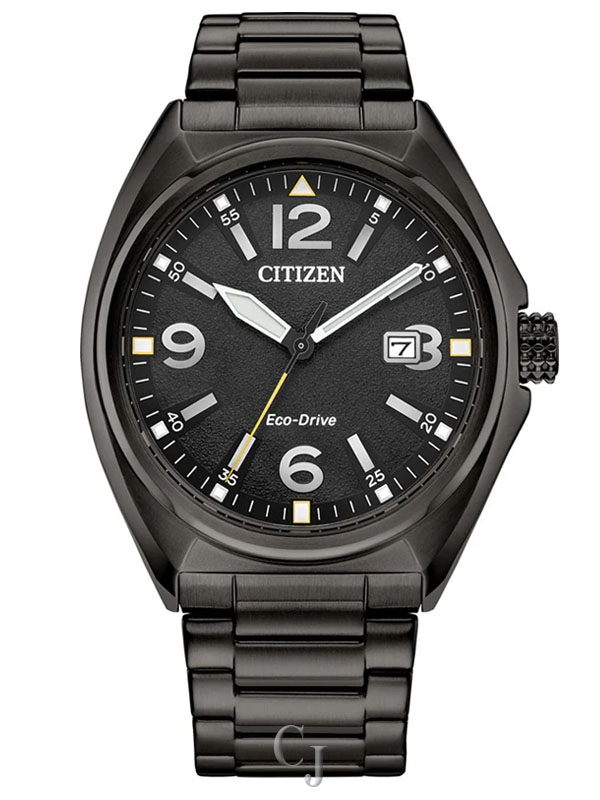 With a sporty look and feel, the Citizen Men’s Sport AW1575-59E is built for everyday versatility. Crafted in silver-tone stainless steel, it features a clean black dial with silver-tone hands and markers. Oversized numerals at 12, 3, 6, and 9 o’clock provide excellent readability while adding a bold, modern touch. A date display at the 3 o’clock position offers practical convenience for daily wear. Powered by Citizen’s reliable Eco-Drive technology, this watch runs on any light source and never requires a battery—making it as efficient as it is stylish.