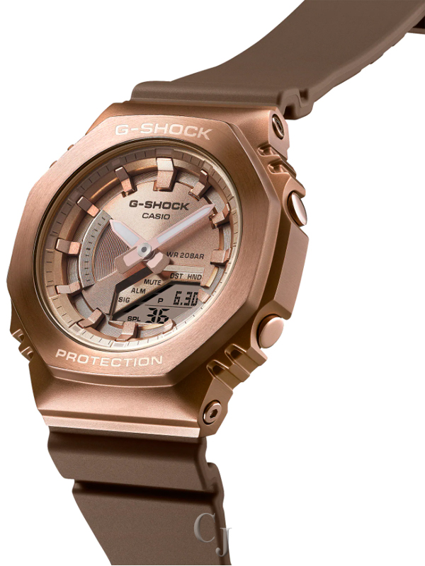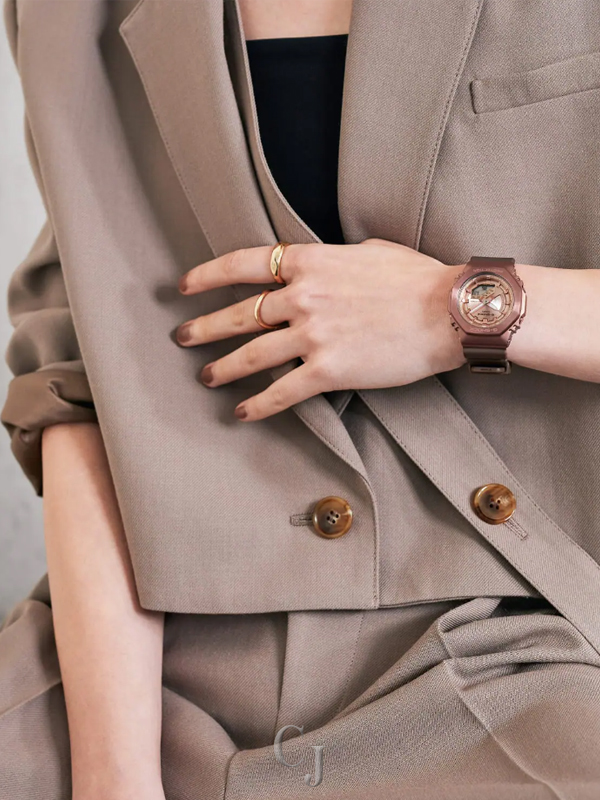 Bask in the glow of warm bronze — a metal-clad G-SHOCK with a smaller profile. Streamlined structural beauty meets a study in elegant color.