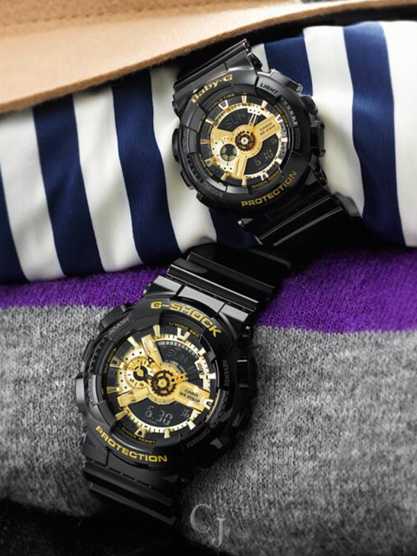 This black and gold watch is smaller and thinner to fit a feminine wrist while retaining the coolness of G-SHOCK. The three-dimensionally arranged indices are painted with a glittering, metallic coat for a refined texture. This gives the black digital watch a sharp and energetic impression.