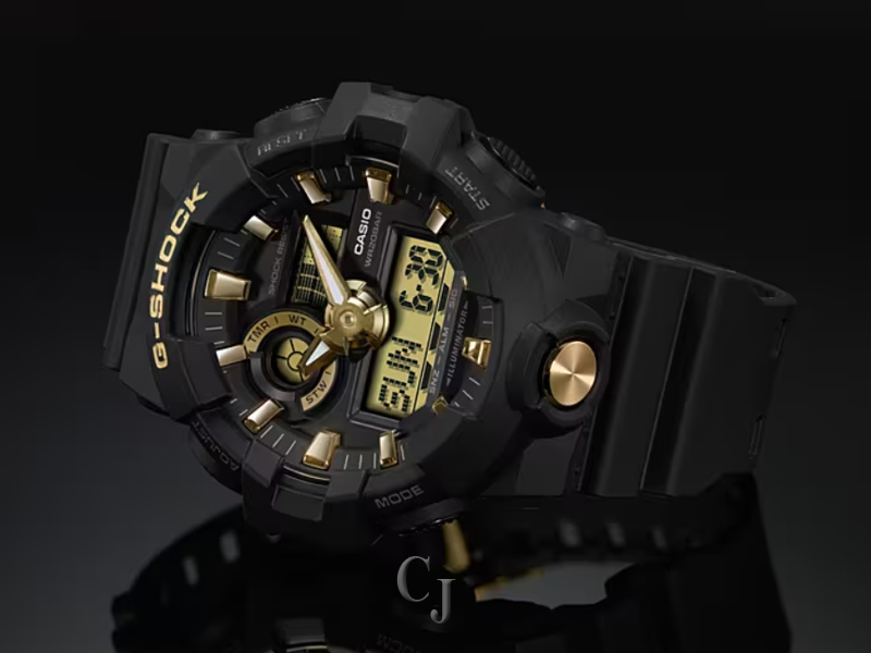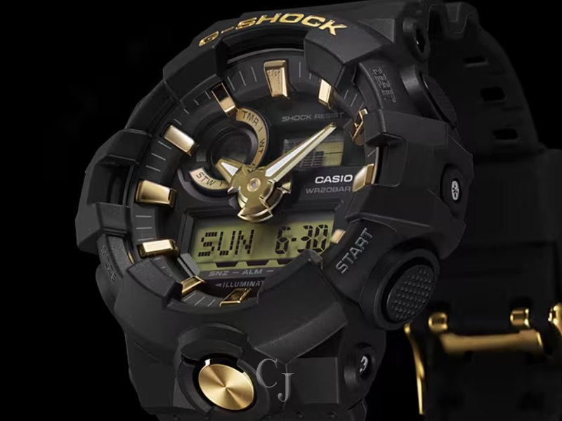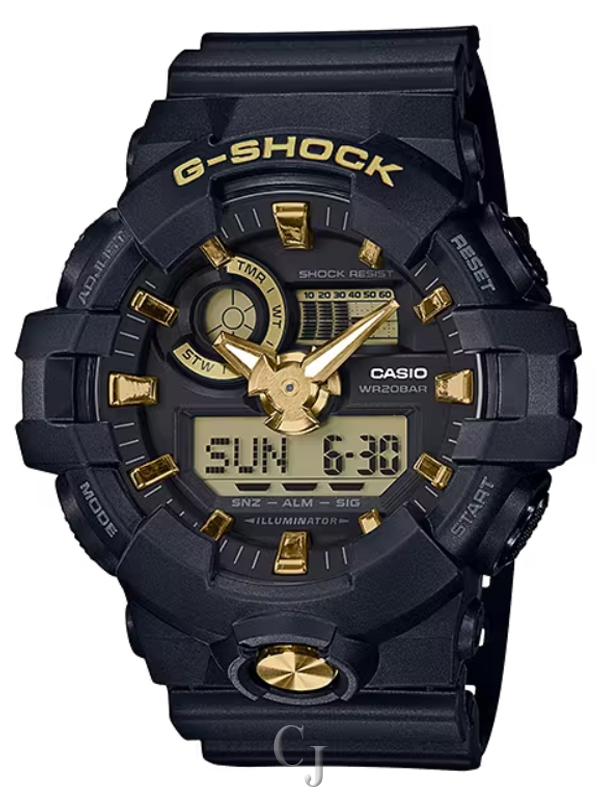 G-SHOCK GA-700 SERIES BLACK DIAL W GOLD ACCENTS ANALOG-DIGITAL WATCH GA-710B-1A9