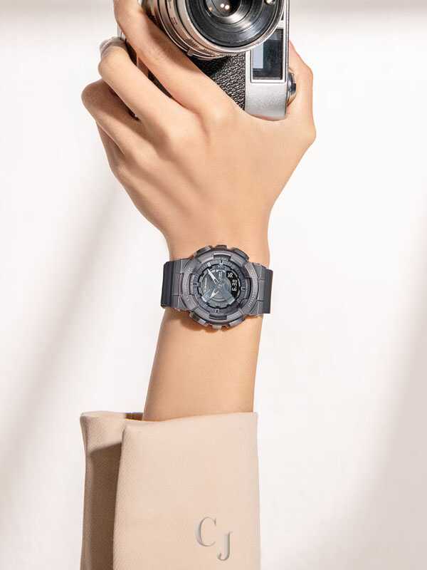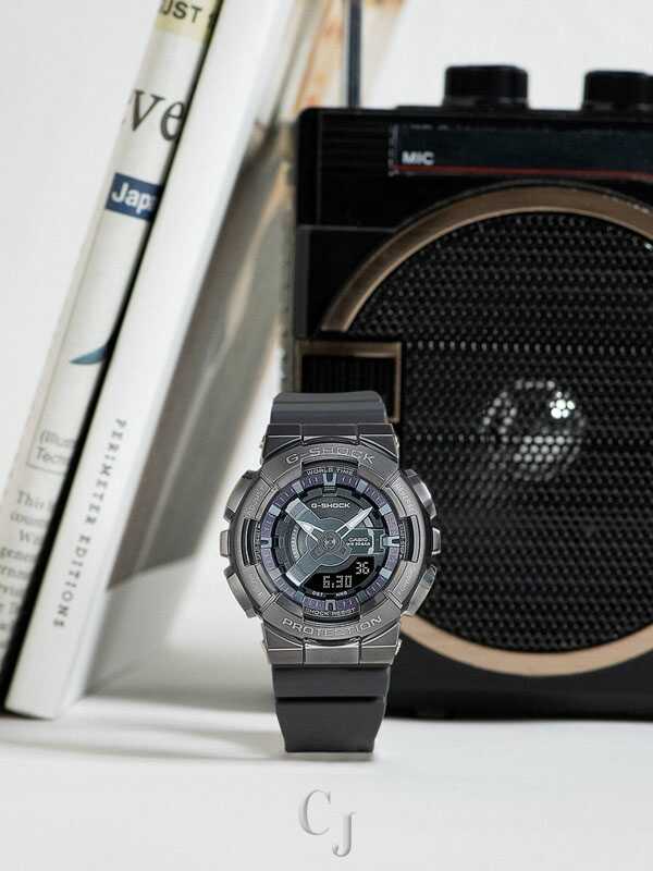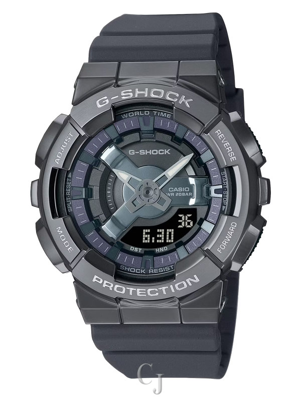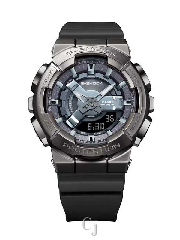 Go metal-clad in total comfort — with the popular GM110 analog-digital combination G-SHOCK, now in an even slimmer, more compact construction.