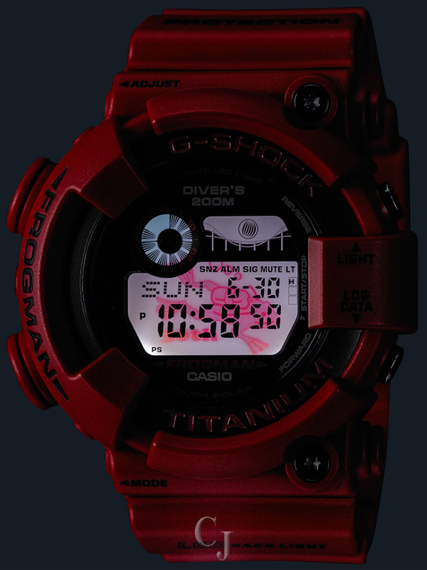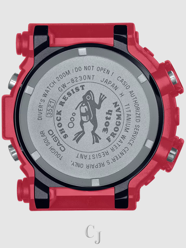 For this very special 30th anniversary design, the popular diving frog so familiar to FROGMAN fans is engraved on the case back and displayed with the LED backlight.