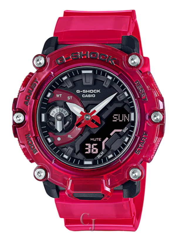 Inspired by a surge of sound flowing over a dance floor, these watches translate this vision into color and design for a stereophonic take on the sporty GA2200 featuring analog hands and digital display.
