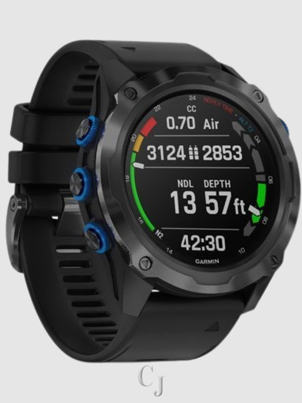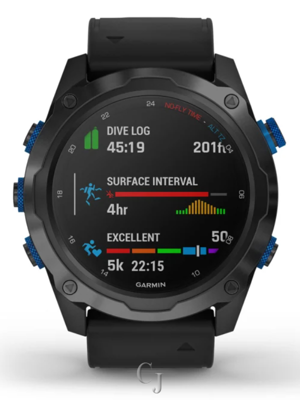 Track your breath and depth with Descent™ Mk2i, the watch-sized dive computer. It features SubWave™ sonar technology for integrated tank pressure monitoring on up to 5 tanks when paired with the Descent™ T1 transmitter, making it ideal for instructors or group dives. Descent Mk2i comes with ABC sensors with an underwater 3-axis compass as well as surface GPS capabilities to mark your entry and exit points (GPS tracking does not work underwater). On land, Descent Mk2i doubles as a premium multisport GPS smartwatch with multi-GNSS support, multiple sports apps, wrist-based heart rate monitoring estimates, Pulse Ox (this is not a medical device and is not intended for use in the diagnosis or monitoring of any medical condition) sensor, advanced training features, Garmin Pay™ payment service (not all countries and payment networks are eligible), music storage, smart notifications (when paired with a compatible smartphone) for calls, texts and calendar alerts and more.