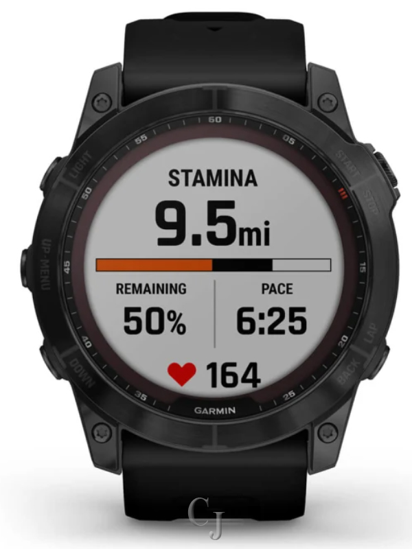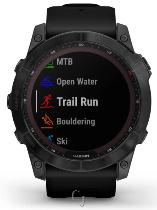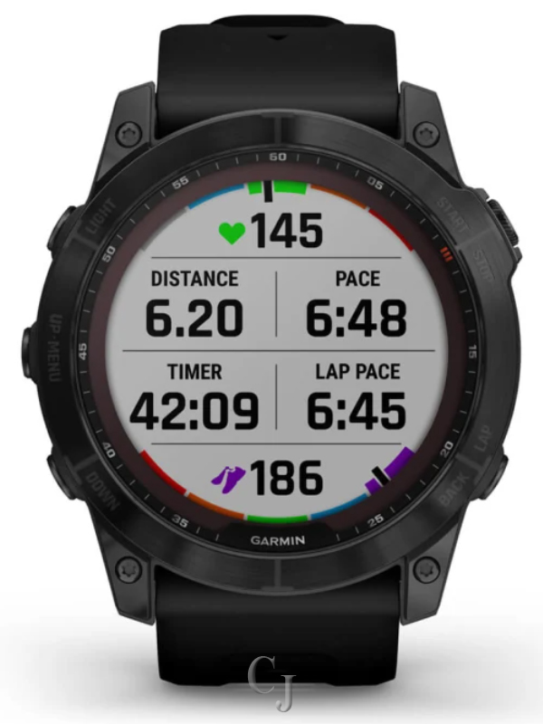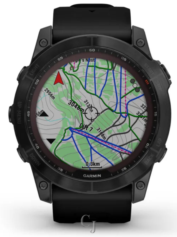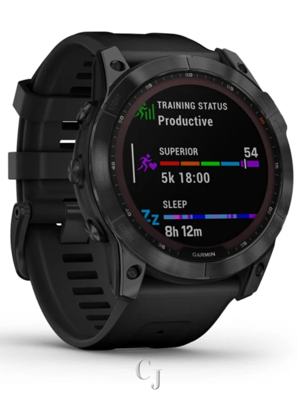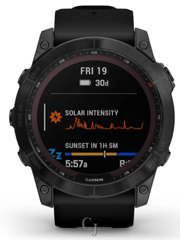 There are 7 days in a week. And the fēnix® 7X Sapphire Solar multisport GPS watch is built to go strong for all of them. Featuring a big 1.4” display, built-in LED flashlight and Power Sapphire™ solar charging lens, it has the long-lasting battery life to sustain your athletic and outdoor challenges. Use trusted button controls or the new touchscreen interface to access selections. Gain performance insights and metrics that help you manage your exertion and build stamina. Optimize recovery with 24/7 health and wellness monitoring of heart rate, respiration, stress, sleep and more (this device is intended to give an estimation of your activity and metrics; it is not a medical device). Outdoor navigation sensors and new multi-band GNSS technology help guide you with a higher level of positioning accuracy, even in challenging environments. Plus, you’ll have preloaded TopoActive maps and worldwide ski and golf maps right on your wrist. To complement your tamer days, connected features include smart notifications when connected to a compatible smartphone, music storage and Garmin Pay™ contactless payments in supported countries and payment networks.