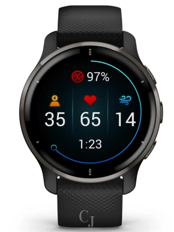 GARMIN VENU 2 PLUS SLATE STAINLESS STEEL BEZEL W/ SILICONE BAND WATCH 010-02496-01