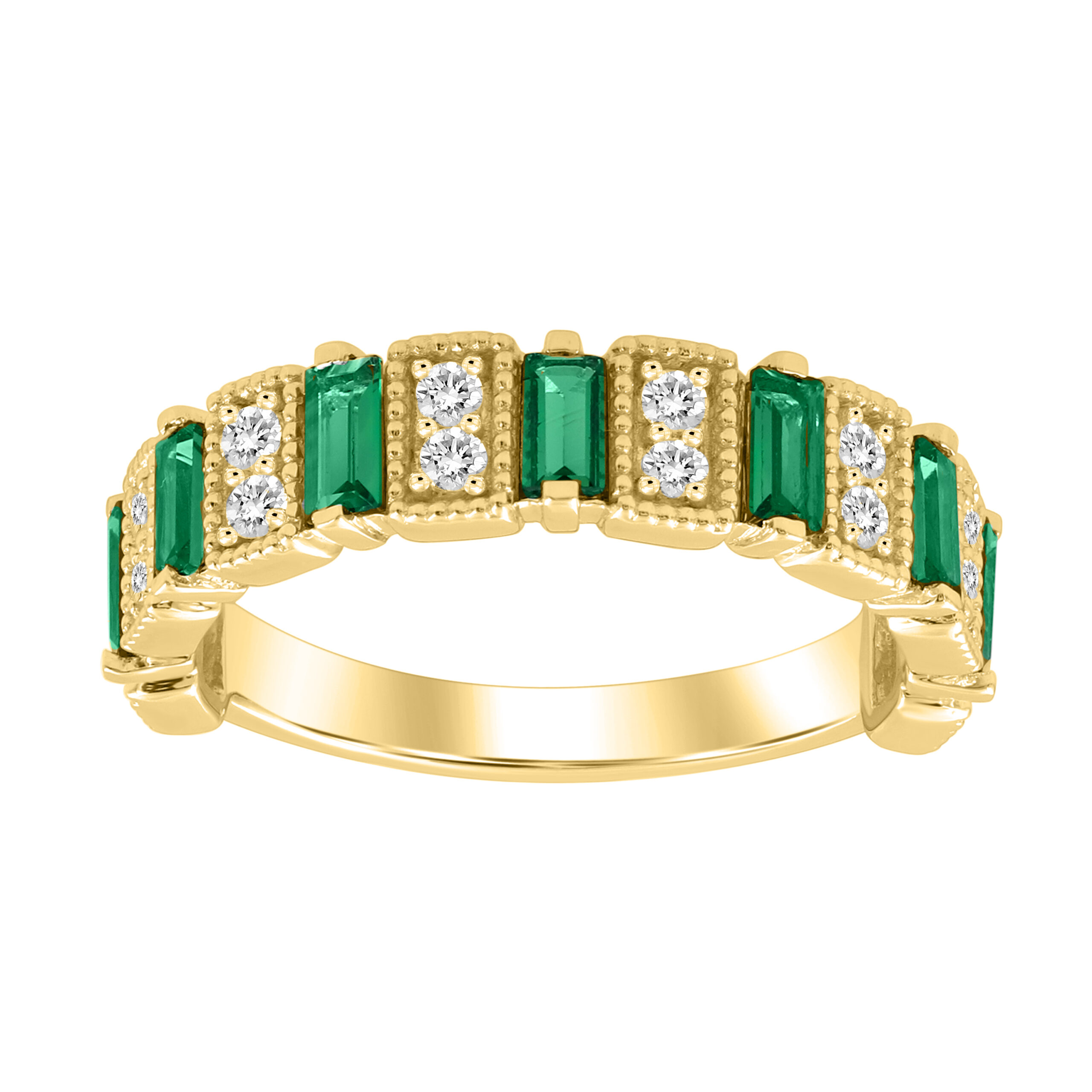 LADIES BAND 1.05CT ROUND/BAGUETTE/EMERALD DIAMOND 14K YELLOW GOLD