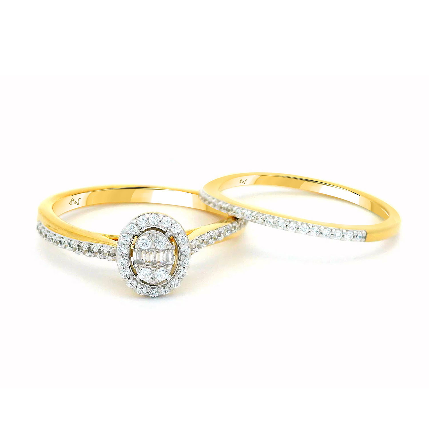 LADIES BRIDAL SET 0.32CT ROUND/BAGUETTE DIAMOND 14K YELLOW GOLD